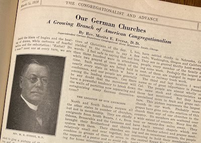 Though we often forget, since the 1840s many ethnic German immigrants from the German Empire and Russia joined and formed Congregational churches, rather than Lutheran ones. By 1913, there were over 132 financially independent German Congregational churches and another 86 had received aid from the Congregational Home Missionary Society. Many worshiped exclusively in German, and there were even separate German Congregational associations.