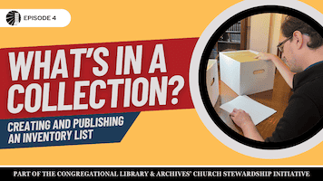 Zachary and Billy explain how and why to create an inventory list: a simple document that includes basic information about the contents of a church’s entire collection of records and often includes a clear description of materials in the collection and an indication of how extensive they are.