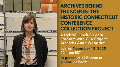 The Congregational Library & Archives recently added over 150 linear feet of material from the Historic Connecticut Conference. The collection was given to the CLA by the Southern New England Conference, UCC (SNEUCC) and supported by grants from the E. Rhodes and Leona B. Carpenter Foundation, the Gladys Krieble Delmas Foundation, and the Missionary Society of Connecticut.
