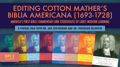 In this hybrid lunch and learn at the Congregational Library & Archives, Dr. Jan Stieverman and Dr. Theodore Delwiche discussed their most recent volume of Cotton Mather’s Biblia Americana and the work of creating critical editions of important religious texts more generally.