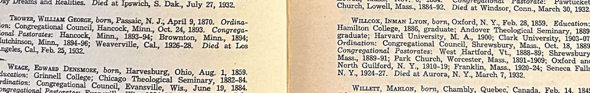 - It was common, particularly during the nineteenth century, for ministers to change denominations over the course of their careers. Even if they were ordained as a Congregationalist, a minister who was not a Congregationalist when they died would probably not have a necrology submitted to these yearbooks.
